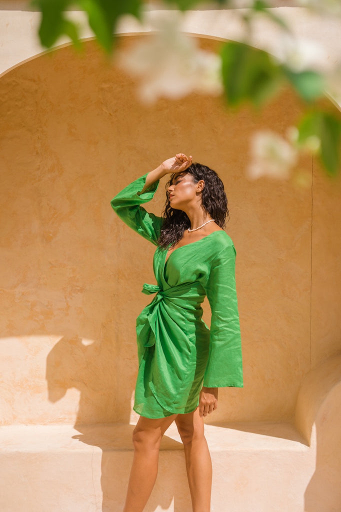Mini shirt knot dress equipped with buttons. Enhancing your whole silhouette with the adjustable knot.