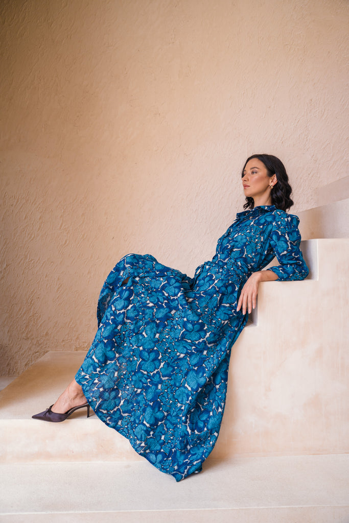 The long-sleeve elegance of Valeria, reimagined for sophisticated summer soirées. Flowy yet structured, it’s formal charm with a breezy twist.