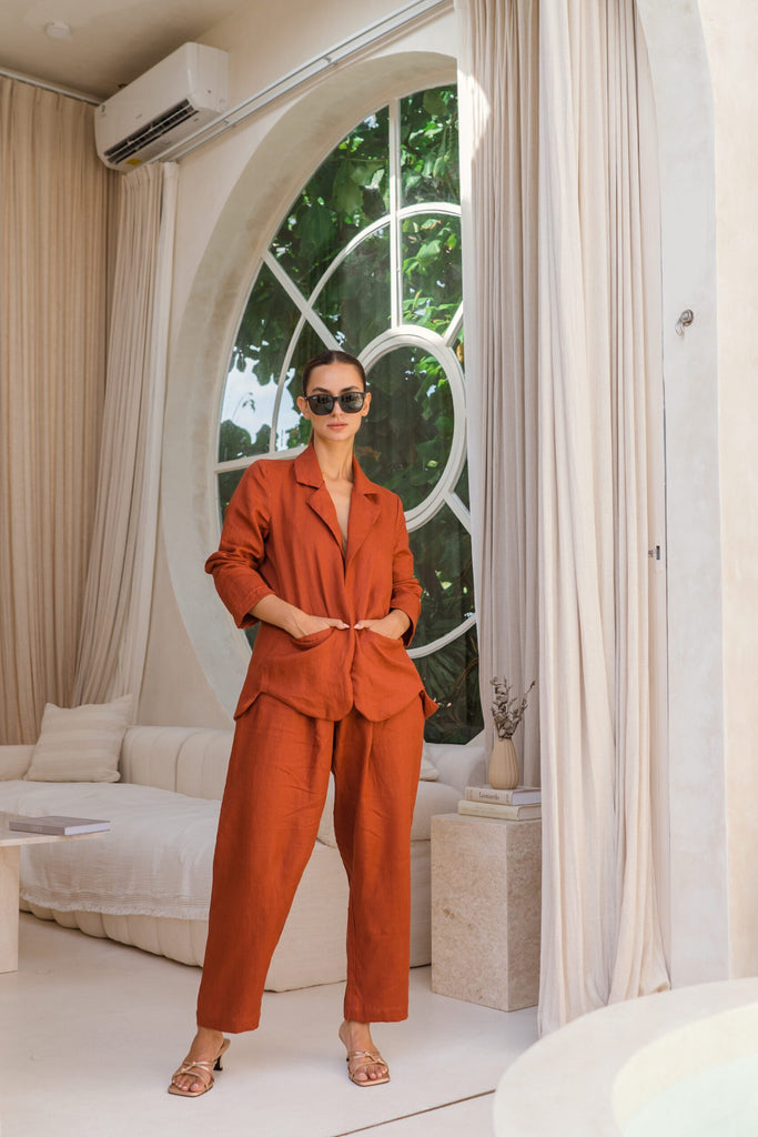 linen blazer features classic design for semi-formal or formal occasion, mix matches with dress or get them in set with Gantari Long Pants