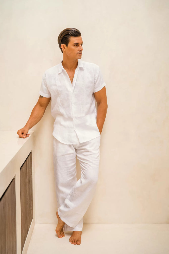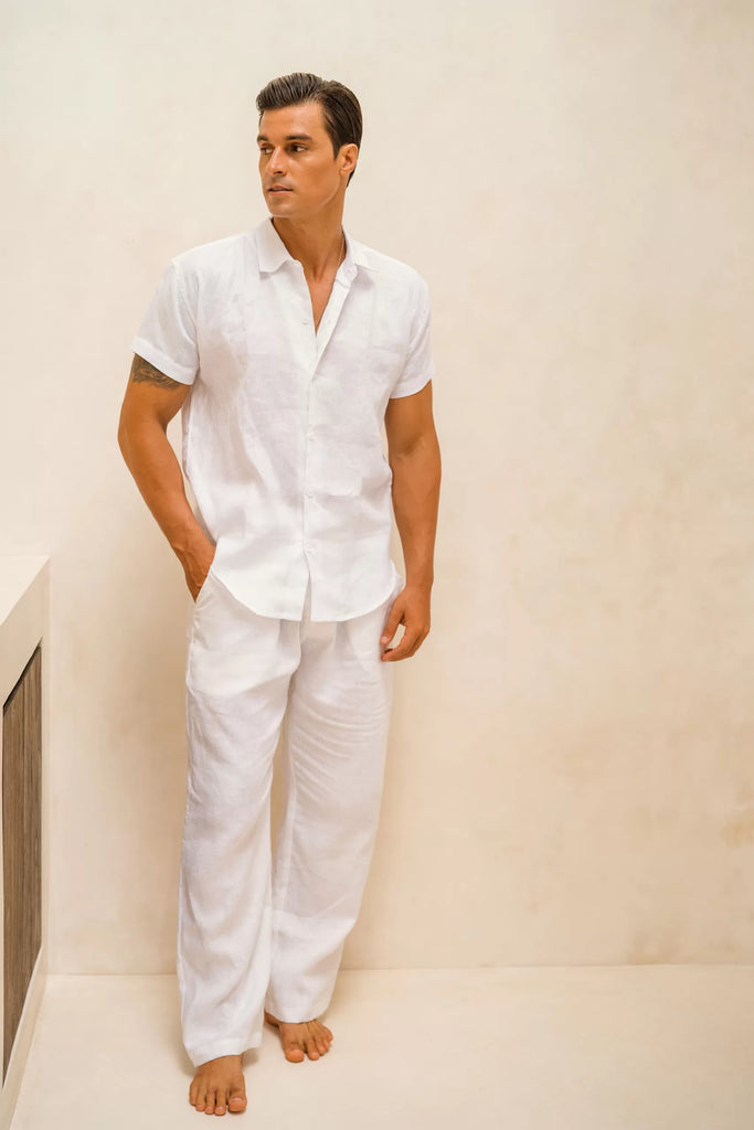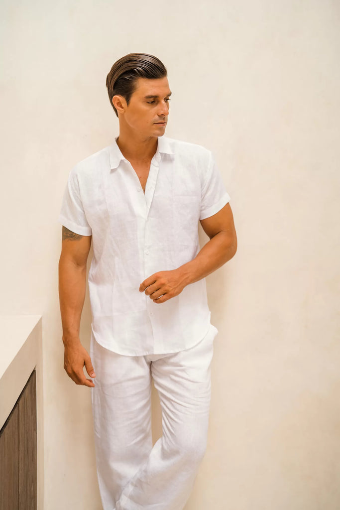 A timeless wardrobe essential that effortlessly combines sophistication with comfort. Crafted from the finest quality linen fabric, this shirt exudes understated elegance and refined style.