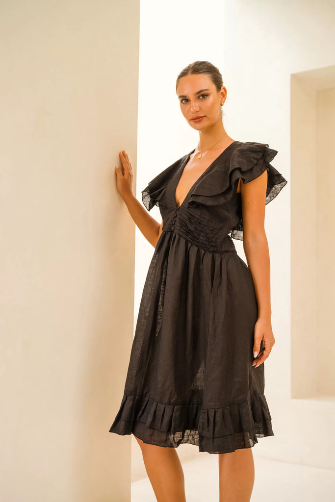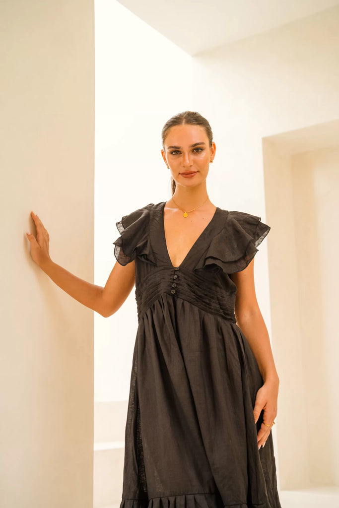 Introducing Radha Dress, a delightful blend of elegance and casual chic. This dress is designed to bring a touch of sophistication to your everyday wardrobe while maintaining a relaxed and effortless vibe. 100% Natural Linen