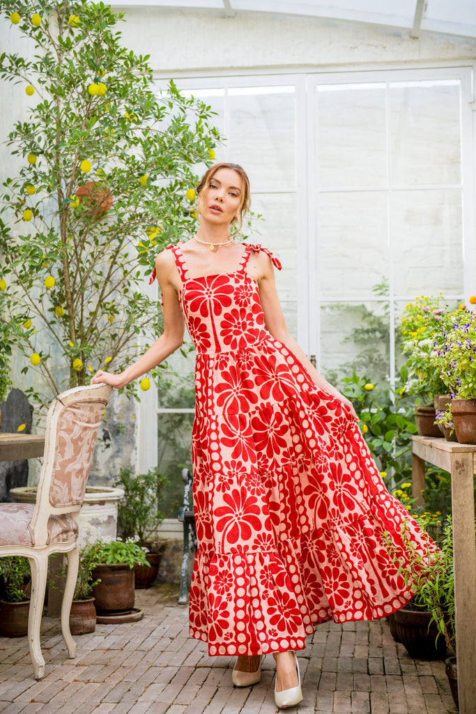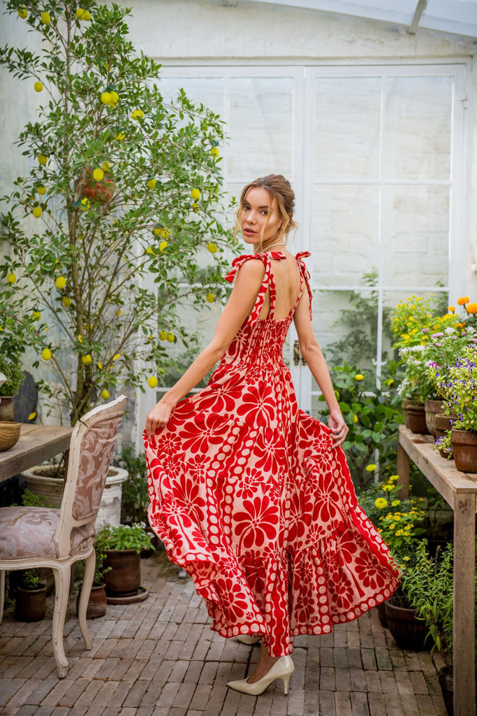 Featuring the Samara Exclusive print, the Natali dress flows elegantly and trails behind for a dreamy, enchanting look.