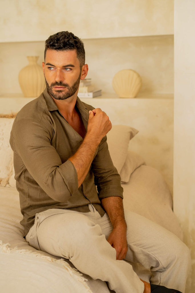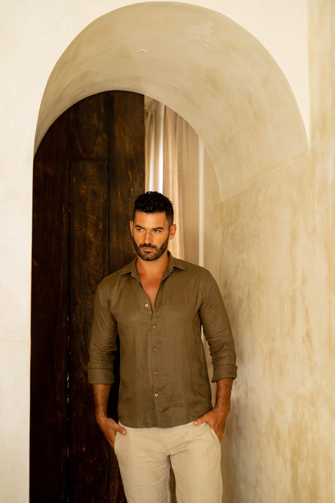 Introducing the Aswin Shirt, a 100% organic linen shirt with a classic collar and high quality. This shirt is perfect for those who want to look their best while also being eco-friendly. The lightweight linen fabric allows for breathability and comfort, while the classic collar adds a timeless touch to any outfit.
