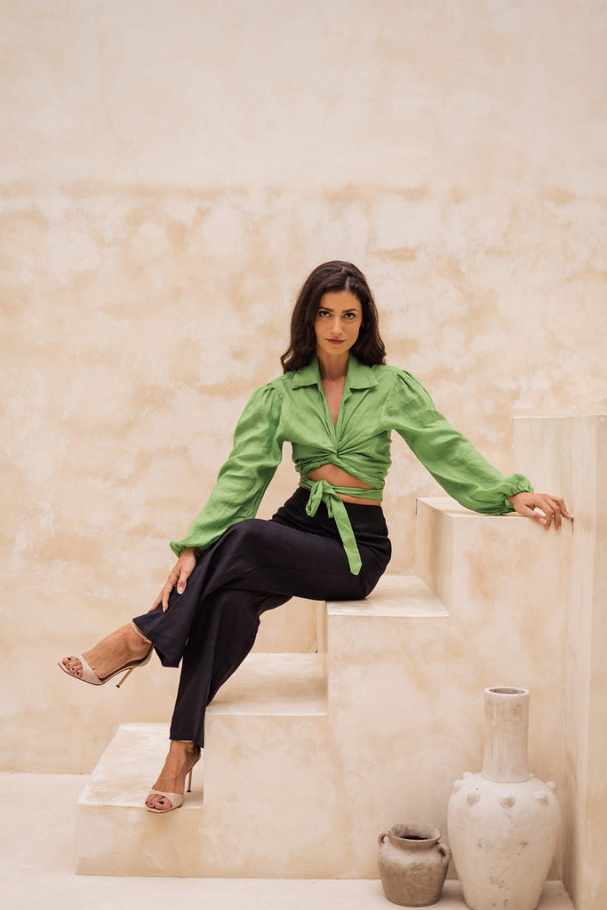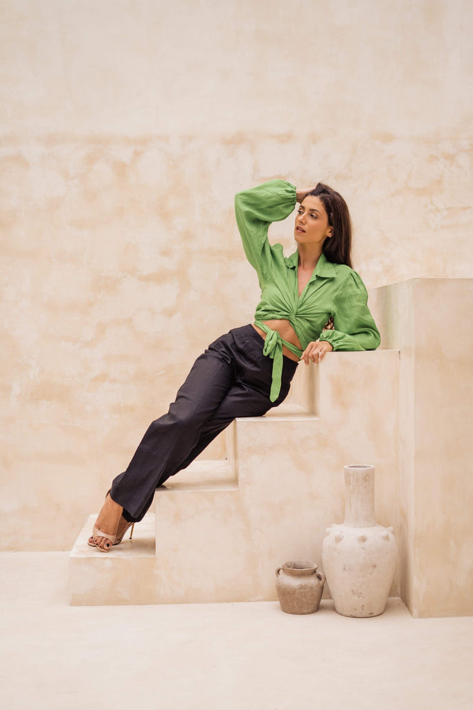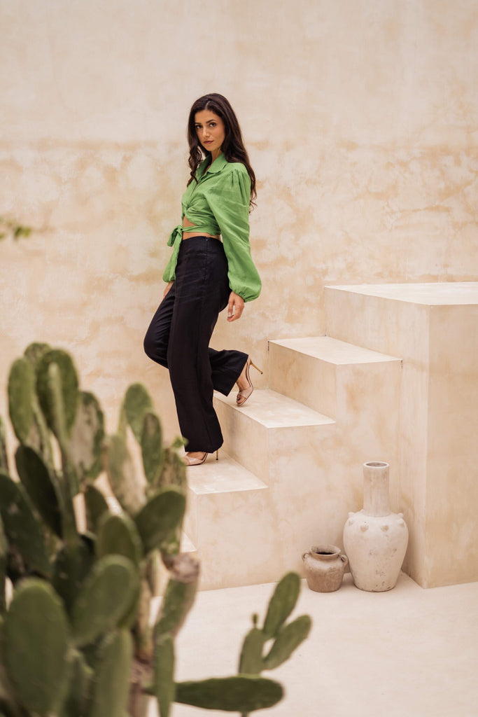A Wide Leg Cut Linen Pants in Black. Perfect to Mix Match With Anything
